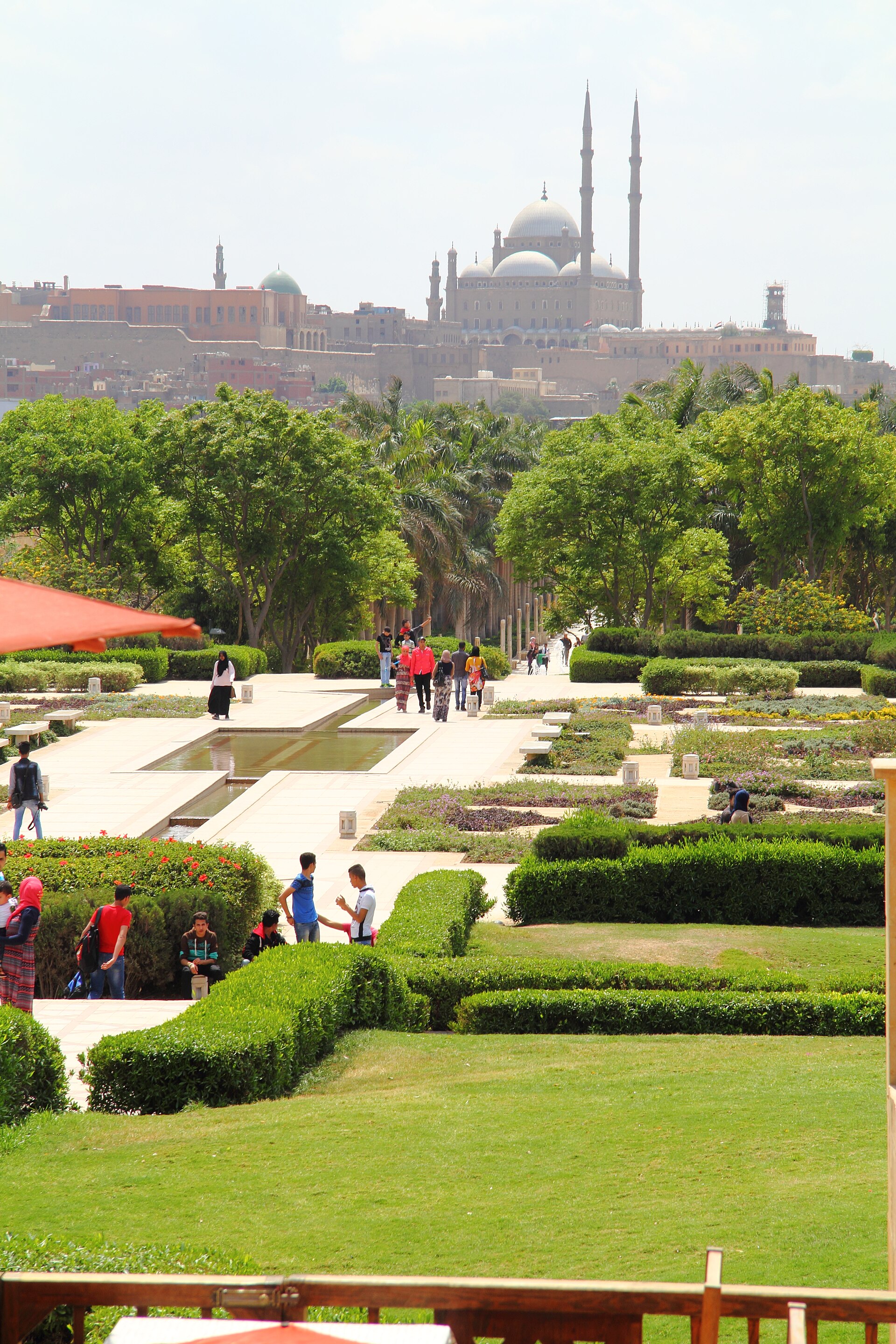 Al-Azhar Park is Cairo's most beautiful green space — a 30-hectare park created by the Aga Khan Trust for Culture on a former rubbish dump on the edge of Islamic Cairo, opened in 2005 and providing the city with its first significant public park in over a century. The transformation — from 500 years of accumulated waste to a manicured landscape of gardens, fountains, and promenades — is one of the most remarkable urban regeneration projects in the Middle East. The park sits on the Darassa Hills, overlooking Islamic Cairo to the west, and the views from its terraces — across the medieval minarets and domes to the Citadel of Saladin on the far ridge — are the finest in the city. The Ayyubid-era city wall, discovered during the park's construction, has been restored and is visible along the park's western edge, adding an archaeological dimension to what is otherwise a thoroughly contemporary landscape. The park's design — by Sasaki Associates with Egyptian landscape architects — uses water, shade, and the traditional Islamic garden vocabulary of geometry and symmetry to create a cool, green refuge from the heat and noise of the surrounding streets. The restaurants on the park's terraces serve Egyptian cuisine with the panoramic view, and the lakeside café provides a waterside setting that is genuinely unexpected in a city that, despite sitting on the Nile, offers remarkably little public access to water. The park charges a modest admission fee that keeps it well-maintained and moderately uncrowded — a rare combination in Cairo.