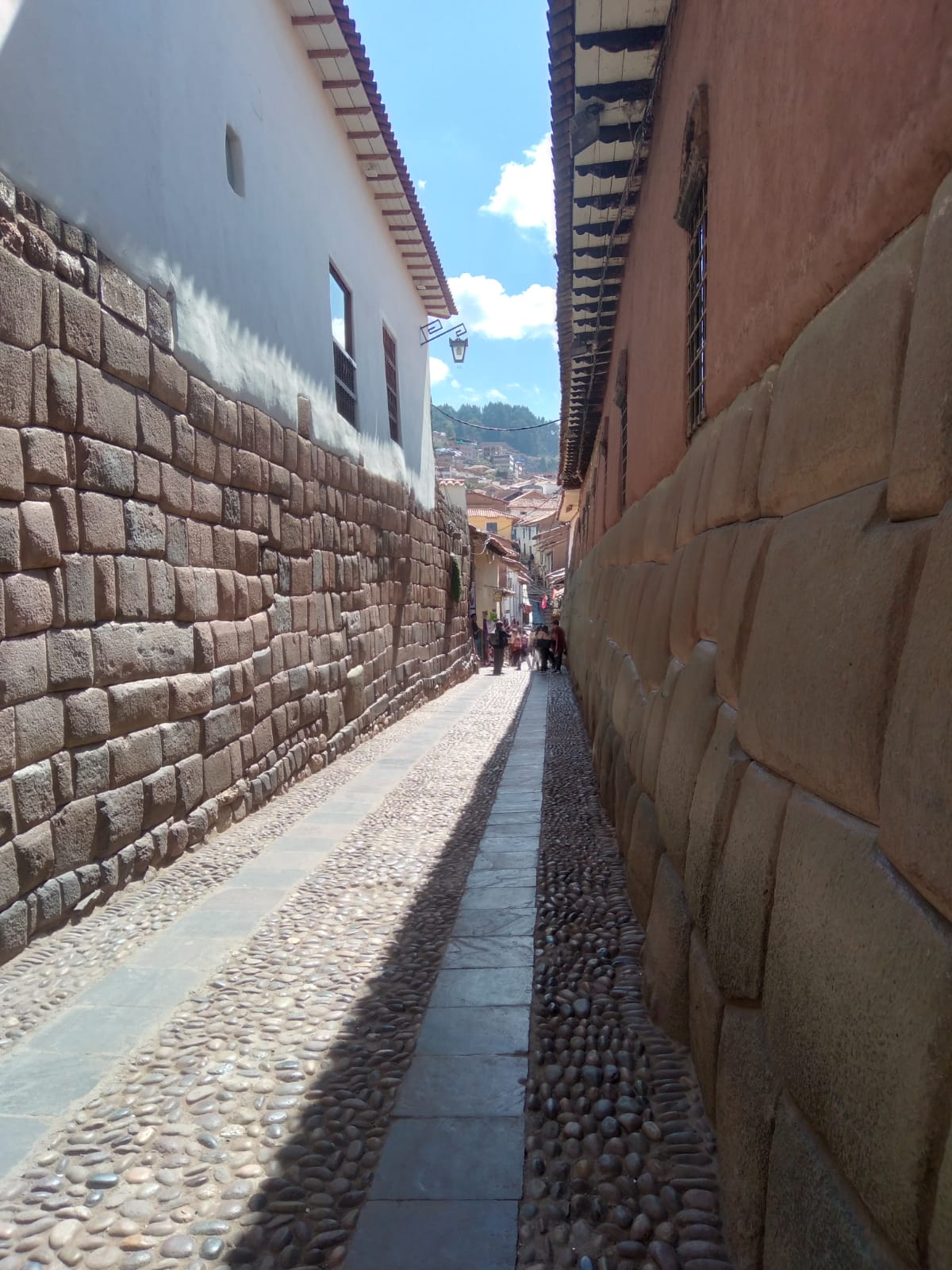 Calle Loreto is the best-preserved Inca street in Cusco — a narrow lane running from the Plaza de Armas southeast toward Qorikancha, flanked on both sides by perfectly fitted Inca stone walls that have been standing since the 15th century. The wall on the left (as you walk from the plaza) was part of the Acllahuasi (House of the Chosen Women, the Inca institution where selected women wove textiles and brewed chicha for the emperor). The wall on the right was part of the palace of Inca Roca. The Inca masonry on Calle Loreto demonstrates the different construction grades the Inca used — the finest, most precisely fitted stonework (used for temples and palaces) is visible here, with each stone individually shaped to fit its neighbours in a mortarless joint that has survived 500 years of earthquakes. The contrast between the Inca foundations (which lean very slightly inward for earthquake resistance) and the colonial buildings above (which sit plumb) is visible along the entire length of the street. The walk from the Plaza de Armas to Qorikancha via Calle Loreto takes about five minutes and provides the most compressed encounter with Cusco's dual architecture — Inca below, Spanish above, both surviving because the Inca understood stone and the Spanish understood how to build on top of it.