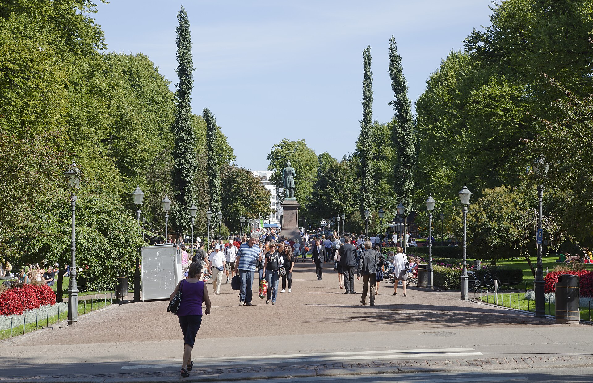 Esplanadi is Helsinki's most beloved park — a linear green space running from the Swedish Theatre to the Market Square between two avenues of shops, cafés, and the kind of civilised urban life that makes Helsinki feel more like a small-scale Vienna than a Nordic capital. The park, designed in the 1830s, is lined with linden trees, dotted with statues and flower beds, and anchored at its eastern end by the Kappeli restaurant — a glass pavilion that has been serving beer and Finnish food since 1867. The park is where Helsinkians come to see and be seen, particularly in summer when the city's long daylight hours (up to 19 hours in June) extend the outdoor season into something approaching Mediterranean levels of public sociability. The Esplanadi Stage, a bandstand in the park's centre, hosts free concerts throughout the summer — jazz, folk, pop, and the Finnish tango (a distinctive variation of Argentine tango that became a national dance form in the 1930s and is treated with a seriousness that would surprise Argentines). The avenues flanking the park — Pohjoisesplanadi (North Esplanade) and Eteläesplanadi (South Esplanade) — contain some of Helsinki's best shops, including the Marimekko and Iittala flagships, the Stockmann department store (Finland's most famous), and the Academic Bookstore (designed by Aalto, with a top-lit atrium that is one of Helsinki's finest interior spaces). The park-as-living-room model, where green space, commerce, and cultural programming coexist within a few hundred metres, is Finnish urbanism at its best.