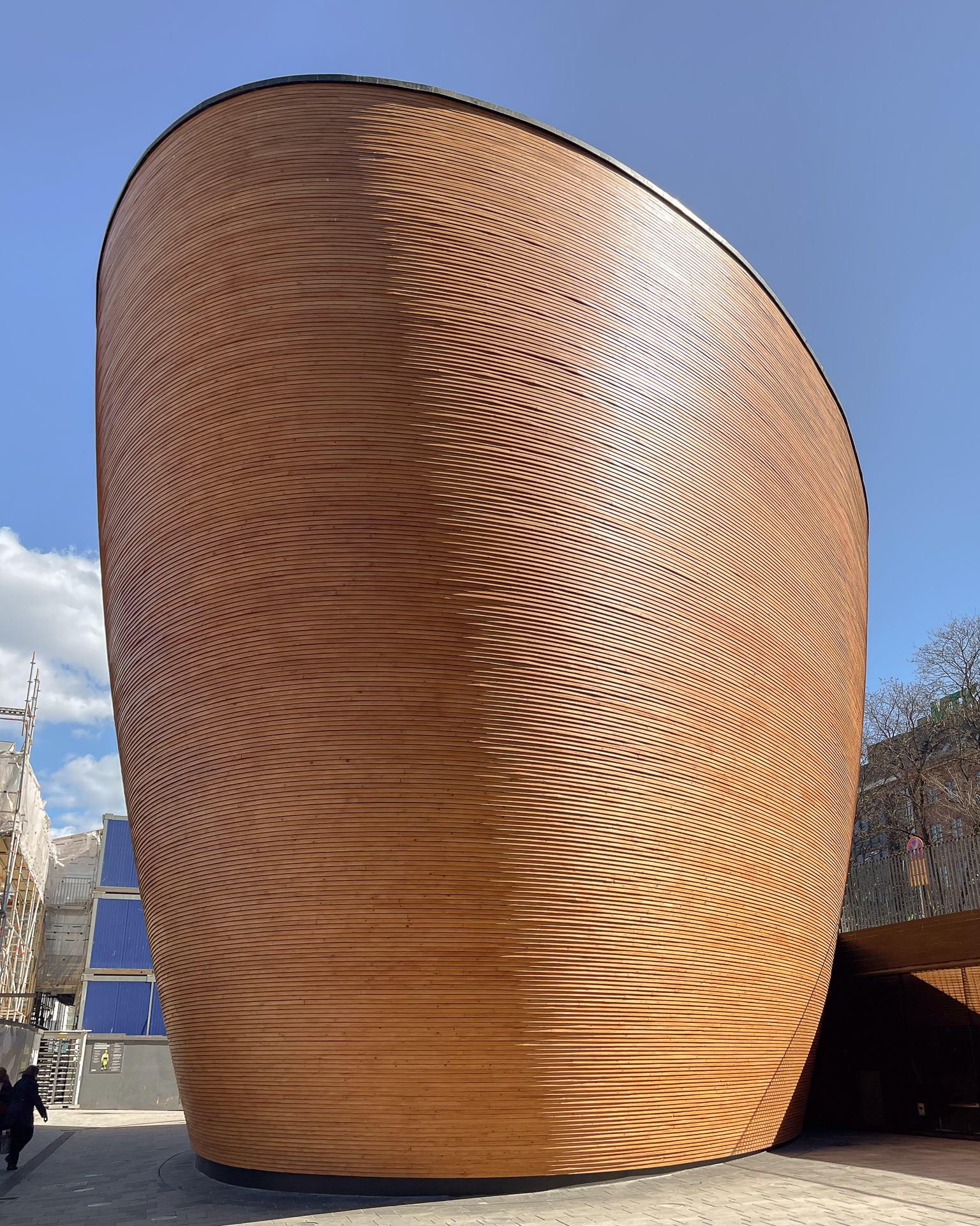 The Kamppi Chapel is a curved wooden vessel of silence in the middle of Helsinki's busiest shopping district — a small, doorless chapel designed by K2S Architects and completed in 2012 that serves no religious denomination and exists solely as a place of quiet in a noisy city. The building, made of spruce planks bent into a curved form that looks like a giant wooden egg, sits in the Narinkkatori square between the Kamppi shopping centre and the bus terminal, and the contrast between the commercial chaos outside and the absolute silence inside is the most dramatic architectural transition in Helsinki. The interior seats about 60 people on simple wooden benches, lit by a single skylight in the curved ceiling. There is no altar, no religious imagery, and no programme — the chapel is simply a quiet room, open to anyone who needs one. The acoustic isolation is extraordinary: the triple-layer walls (spruce, insulation, alder) block virtually all external noise, and the curved interior surfaces absorb rather than reflect sound, creating a silence so complete it becomes an active presence. The chapel was commissioned by the Helsinki parish union and the city social services department as a response to the mental health needs of an increasingly urban, stressed population — a recognition that silence is a public service as essential as clean water or public transport. The building is free, open during daylight hours, and is used by people seeking meditation, mourning, decompression, or simply a few minutes away from the relentless sensory input of the city outside.