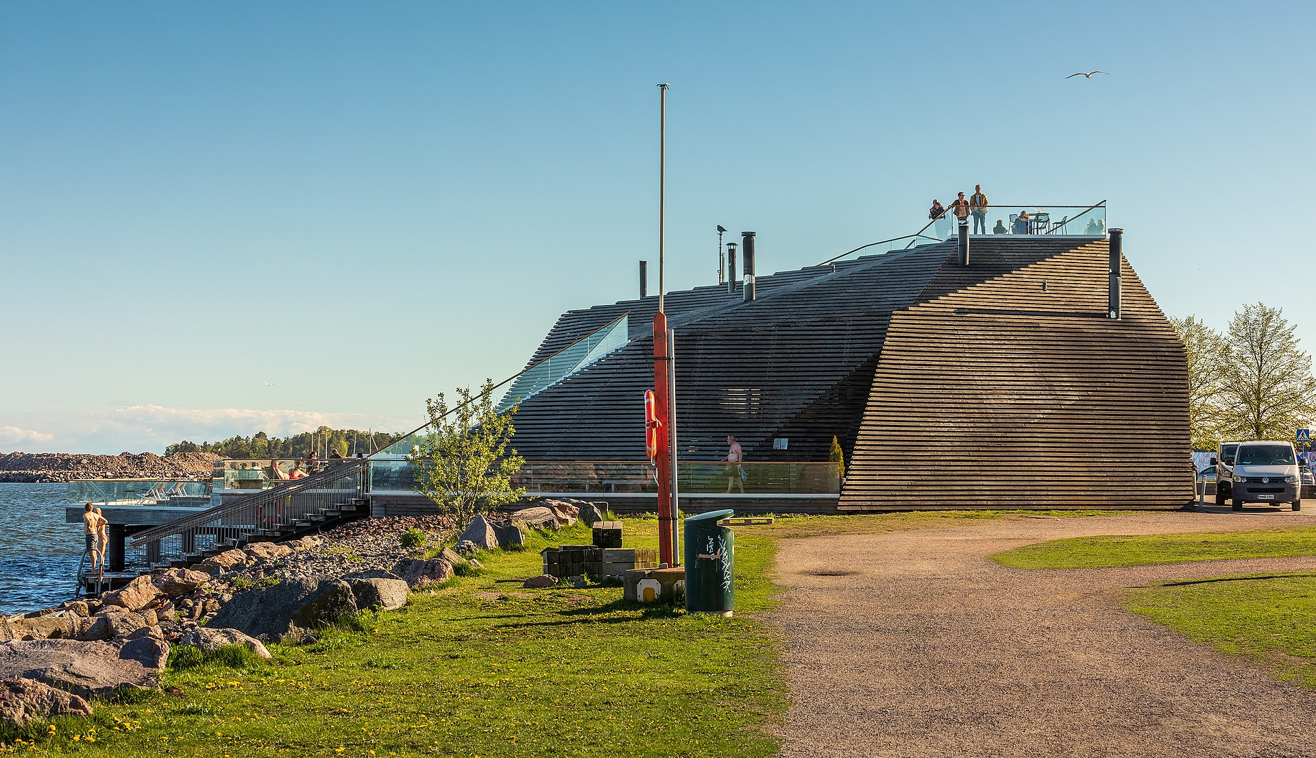 Löyly is Helsinki's most architecturally significant public sauna — a waterfront building of slatted timber that steps down to the sea like a wooden wave, designed by Avanto Architects and opened in 2016 as part of Helsinki's efforts to make its sauna culture accessible to visitors. Finland has 3.3 million saunas for a population of 5.5 million, and the sauna is not a luxury but a basic component of Finnish life — the word 'sauna' is the only Finnish word in the English language, and the practice (heating to 80°C, throwing water on hot stones to create steam, cooling in the sea or a lake) is the closest thing Finland has to a national religion. Löyly has three saunas — a wood-burning sauna (the traditional type), a smoke sauna (savusauna, considered the most authentic, where the smoke from the fire fills the room before being vented), and a steam sauna. Between rounds, bathers cool off by swimming in the Baltic Sea directly from the terrace, which in winter means entering water that is barely above freezing — an experience that Finns describe as 'refreshing' and that non-Finns describe using vocabulary that is not suitable for print. The building itself won the International Architecture Award in 2016, and its timber-clad exterior — designed to weather to silver-grey over time, blending with the maritime environment — has become an architectural landmark on the Hernesaari waterfront. The restaurant and terrace, accessible without using the sauna, serve Finnish cuisine and provide harbour views. Löyly is the public sauna for visitors; for the authentic neighbourhood experience, the older Kotiharjun Sauna in Kallio (operating since 1928, wood-burning, no tourists) is the local choice.