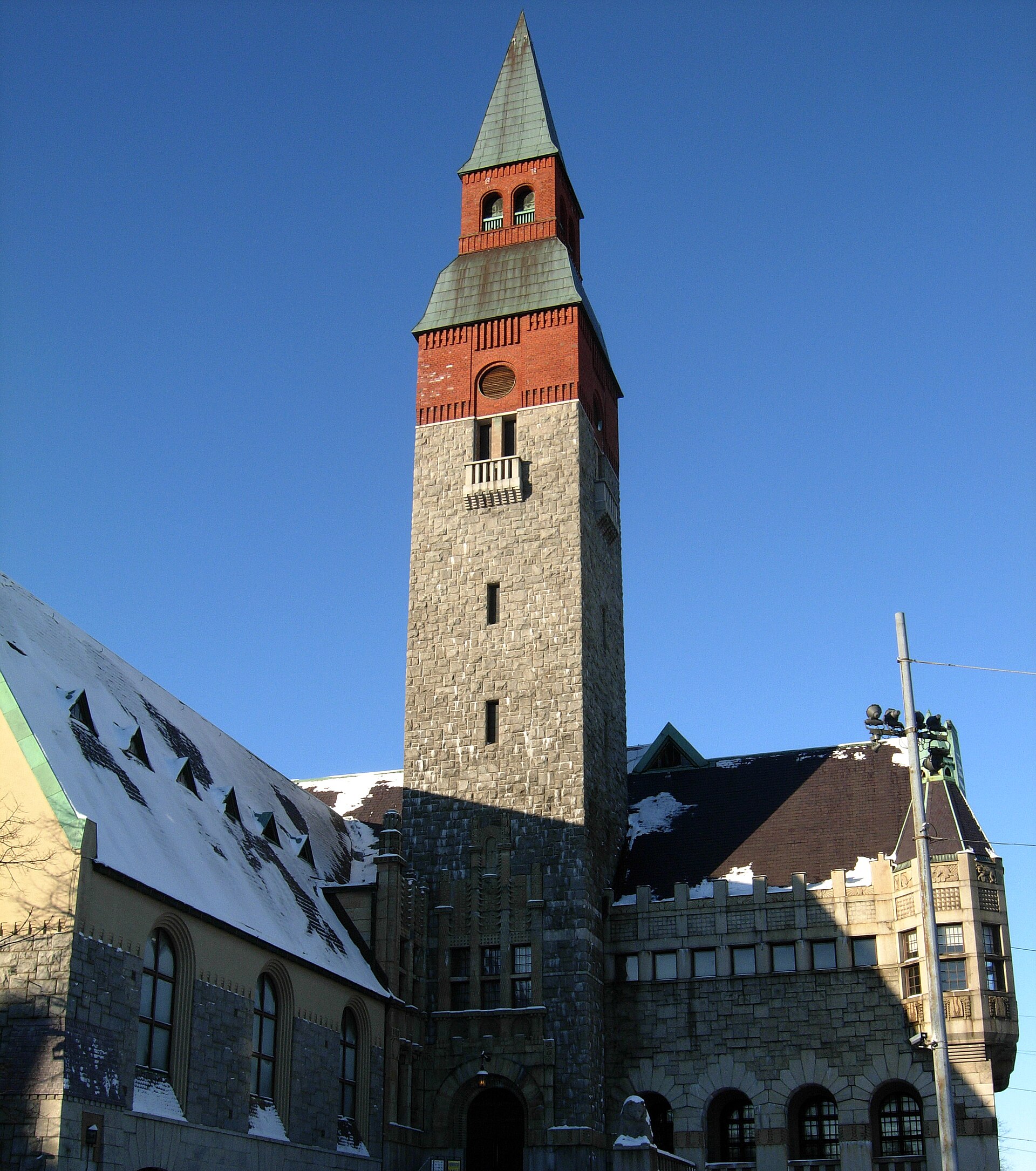 Helsinki Central Station is the most recognisable building in Finland — a granite Art Nouveau-meets-Art Deco railway station designed by Eliel Saarinen and completed in 1919, whose clock tower, arched entrance, and four stone giants holding globe-shaped lamps have become the symbol of Helsinki as surely as the cathedral. The station handles 200,000 passengers daily and is the busiest building in Finland, but its architectural quality is so high that it transcends its function — this is a building that makes arriving by train feel like arriving at a temple. Saarinen originally designed the station in the National Romantic style (medieval references, rough stone, organic forms), but public criticism led him to redesign it in a stripped, geometric style that anticipated Art Deco by a decade. The result — clean granite surfaces, geometric detailing, and the famous lamp-bearing giants by Emil Wikström flanking the entrance — influenced station design internationally and established Saarinen's reputation (he later moved to America, where his son Eero designed the Gateway Arch and TWA Terminal). The station's central hall, with its high vaulted ceiling and natural light from the arched windows, is one of Helsinki's finest public interiors. The building sits at the intersection of Mannerheimintie and Kaivokatu, at the exact centre of Helsinki's urban geography, and every major destination in the city is within walking distance or a short tram ride from its doors. The station's status as a national landmark is such that when it was cleaned in 2010 (decades of soot removed from the granite), Helsinkians were startled to discover their dark, familiar station was actually light grey.