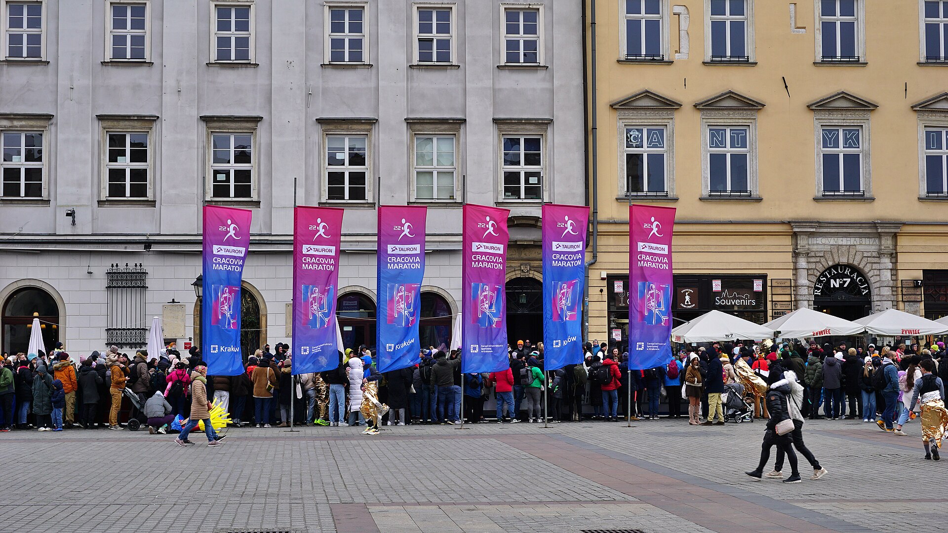 Rynek Główny is the largest medieval town square in Europe — 40,000 square metres of open space ringed by townhouses, churches, and pavement cafés that has been the beating heart of Kraków since the city was laid out on a grid in 1257. Stand in the centre and you're surrounded by 800 years of history doing a very good job of pretending to be a pleasant afternoon. The square was designed as a marketplace, and the Cloth Hall (Sukiennice) that runs down its centre has been fulfilling that role since the 14th century — it's considered the oldest shopping mall in the world, though the souvenir amber and lace on sale today is a slight step down from the medieval cloth trade that made Kraków rich. The hall's Renaissance arcade, rebuilt after a fire in 1555, is gorgeous — arched loggias on the upper floor now house a gallery of 19th-century Polish art. Every hour, a trumpeter plays the Hejnał mariacki from the taller tower of St Mary's Basilica — a five-note melody that cuts off mid-phrase, commemorating a 13th-century watchman who was shot through the throat by a Tatar arrow while sounding the alarm during the Mongol invasion. The tradition has continued unbroken for centuries, and the melody is broadcast live on Polish radio at noon every day. At Christmas, the square hosts one of Europe's most atmospheric markets. In summer, it's a vast outdoor living room where half of Kraków seems to be drinking beer and watching the world pass.
