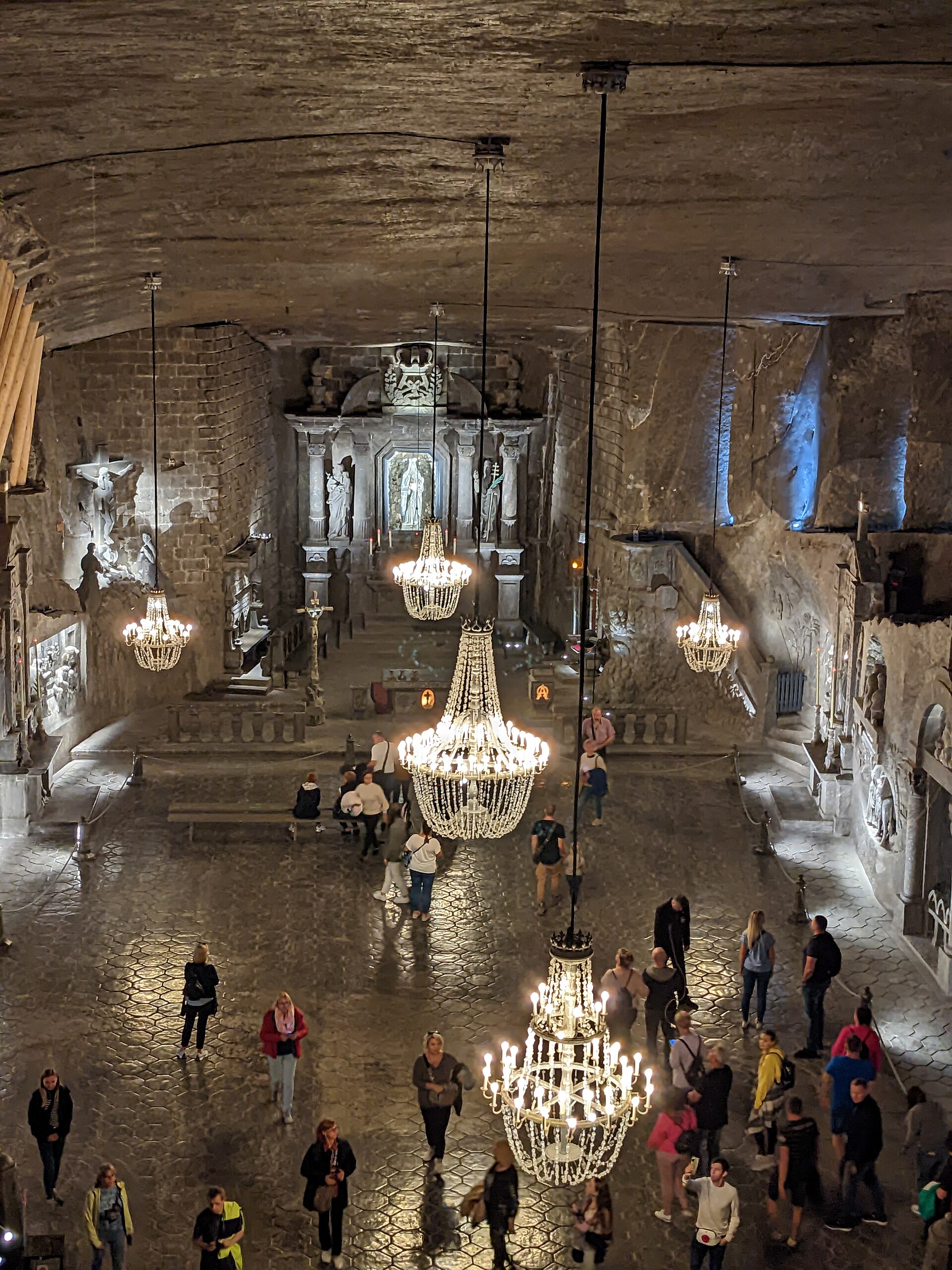 Wieliczka is what happens when miners spend 700 years underground and get bored. This UNESCO World Heritage salt mine, 14 kilometres from Kraków, has been in continuous operation since the 13th century, and over the centuries the miners carved the salt into an underground cathedral, complete with chandeliers, altarpieces, statues, and an entire chapel — all made from rock salt. The Chapel of St. Kinga, 101 metres below the surface, is the centrepiece. It's the size of a large church, entirely carved from salt — the floor, walls, ceiling, and even the chandeliers (which are made of salt crystals dissolved and reconstituted into translucent forms). The bas-relief scenes on the walls include a salt version of The Last Supper and a salt Nativity scene. Miners carved it over 67 years between 1895 and 1963, working in their spare time as an act of devotion that doubles as the most impressive hobby project in history. The tourist route covers about 3.5 kilometres over 3 hours, descending 135 metres through chambers connected by wooden staircases and tunnels. The mine extends much further — over 300 kilometres of passages on nine levels — but most of it is off-limits. The temperature underground is a constant 14°C regardless of the season, so bring a layer. The most surreal moment is when the guide turns off the lights in one of the deeper chambers and you experience total darkness — the kind your eyes never adjust to, the kind that miners worked in for centuries with nothing but a candle.