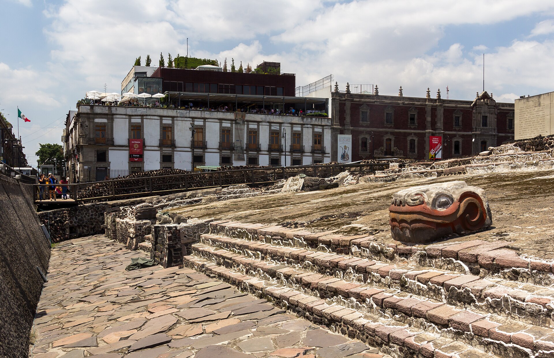 Templo Mayor is the excavated remains of the main temple of the Aztec capital Tenochtitlan — the pyramid that stood at the centre of the empire and was the site of human sacrifices, astronomical observations, and the political ceremonies that held the Aztec world together. The temple was destroyed by the Spanish in 1521 and buried under the colonial city, and it wasn't rediscovered until 1978 when electrical workers stumbled upon a massive stone disc depicting the dismembered goddess Coyolxauhqui. The excavation that followed revealed seven layers of construction — each Aztec ruler built a new temple over the previous one, like Russian nesting dolls in stone — and the ruins now sit in an open pit adjacent to the Metropolitan Cathedral, creating a visual collision between the Aztec and Spanish worlds that is the defining image of Mexico City's layered identity. You look down from street level into the foundations of a civilisation that the street was built to erase. The adjacent museum is excellent — one of the best archaeological museums in Mexico, displaying over 7,000 objects recovered from the excavation, including the Coyolxauhqui Stone, sacrificial knives, offerings of jade and gold, and the remains of the tzompantli (skull rack) that once displayed the heads of sacrificial victims. The museum's presentation is matter-of-fact about the violence of Aztec religion while contextualising it within a sophisticated civilisation that built aqueducts, schools, and botanical gardens alongside its sacrificial altars.