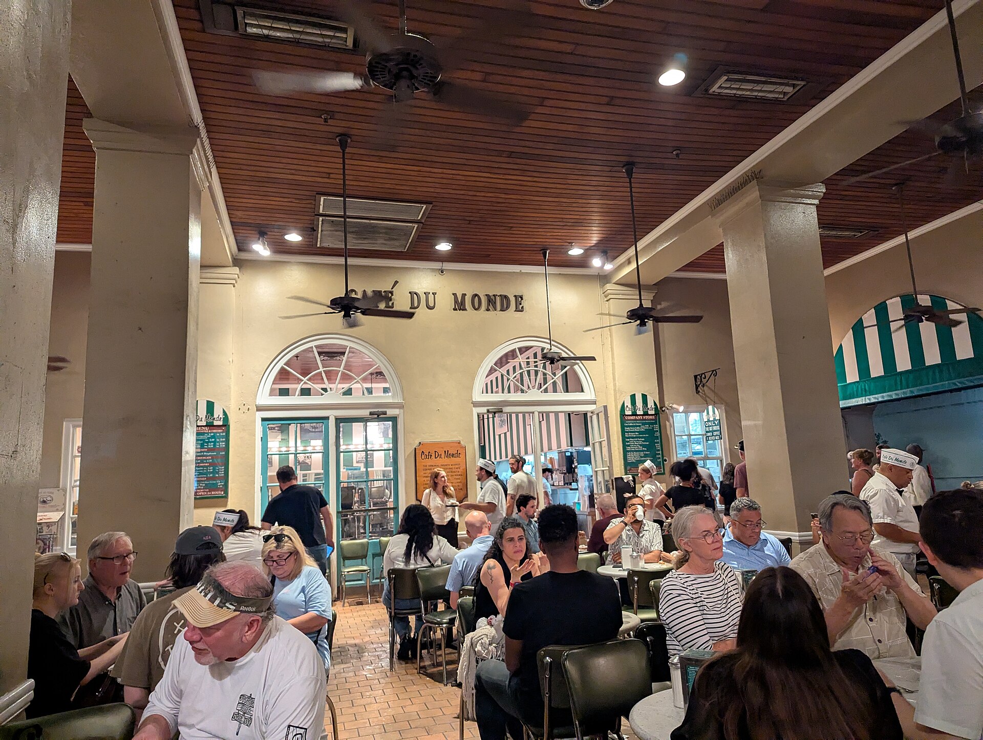Café Du Monde has been serving beignets and café au lait from the same French Market location since 1862, and it has never closed — not for holidays, not for hurricanes (it reopened after Katrina within weeks), and not for the small matter of the menu having exactly three items: beignets, café au lait, and orange juice. The simplicity is the point. The beignets arrive three to a plate, buried under an avalanche of powdered sugar that immediately transfers to your clothes, your face, and the table, and the chicory coffee is strong enough to justify a 24-hour operation. The experience is inseparable from the location — an open-air pavilion at the edge of Jackson Square where the Mississippi River is visible through the levee, street musicians play within earshot, and the queue (there is always a queue) moves faster than it looks. The café has no walls, which means the summer heat and the occasional rain are part of the package, but the absence of air conditioning is what keeps the atmosphere authentic rather than sanitised. The beignets themselves are simple — fried dough, powdered sugar, nothing else — but the execution matters. They arrive hot, the exterior crisp, the interior airy, and the sugar sticks to the residual oil in a coating that's halfway between doughnut and funnel cake. The café au lait, made with chicory (a New Orleans tradition dating to the Civil War, when coffee shortages led to cutting it with roasted chicory root), has a slightly bitter, earthy flavour that cuts through the sweetness of the beignets. It's the best $5 breakfast in America.