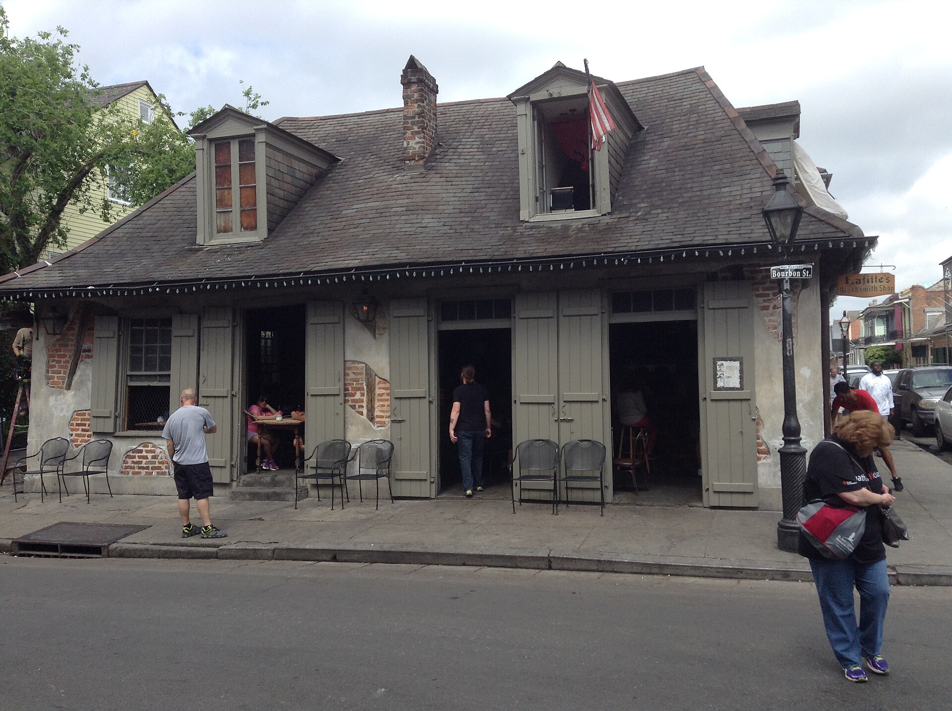 Lafitte's Blacksmith Shop is one of the oldest structures in the French Quarter — a crumbling brick-between-posts building from around 1772 that legend says was used as a front for the pirate Jean Lafitte's smuggling operation. Whether the pirate connection is true is debatable (historians argue about it endlessly), but the building is genuine French Colonial construction, and the bar inside is one of the most atmospheric drinking establishments in America. The interior is lit almost entirely by candles, and the effect on a dark evening — shadows flickering across exposed brick walls, the glow of votives on the bar and tables, the general sense of drinking in a building that was old when the Louisiana Purchase happened — is more Gothic romance than sports bar. A pianist plays in the back room most evenings, and the music drifts through the building with the kind of lazy intensity that only candlelight and old walls can produce. The bar sits on the quieter upper end of Bourbon Street, past the strip-club-and-karaoke zone that dominates the lower blocks, and it draws a mix of tourists who've read about it and locals who appreciate a drink in a building that hasn't been renovated into sterility. The purple voodoo daiquiris are the signature drink — not because they're good (they're extremely sweet), but because they're what you drink at Lafitte's, in the same way that beignets are what you eat at Café Du Monde. Some New Orleans traditions exist because of quality; others exist because of momentum. Both types are valid.