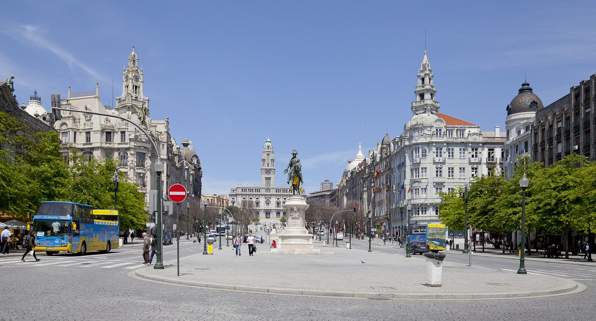 Avenida dos Aliados is Porto's grandest street — a broad, sloping boulevard lined with early 20th-century buildings that was designed to give the city a Parisian-style civic centre. The City Hall anchors the top of the avenue with a clock tower that's become a Porto landmark, and the buildings flanking both sides compete for attention with ornate facades, domes, and statuary that reflect the confident wealth of Porto's commercial golden age. The architecture is eclectic — Art Nouveau, Beaux-Arts, Art Deco, and a few buildings that seem to be all three simultaneously. The most striking is the former Banco de Portugal building, now a bank museum, whose granite exterior hides an interior of stained glass and polished wood that rivals any church. The McDonald's on the avenue — yes, McDonald's — occupies a space so ornate, with stained glass windows and crystal chandeliers, that it's become a tourist attraction in its own right. Only in Porto would a fast food restaurant feel like a cathedral. Praça da Liberdade at the bottom of the avenue features an equestrian statue of King Pedro IV and connects to São Bento Station and the old town. The square and avenue together function as Porto's Times Square — this is where crowds gather for New Year's Eve, football celebrations, and the occasional political protest. On regular days, it's simply a grand urban space where Porto puts on its best suit.