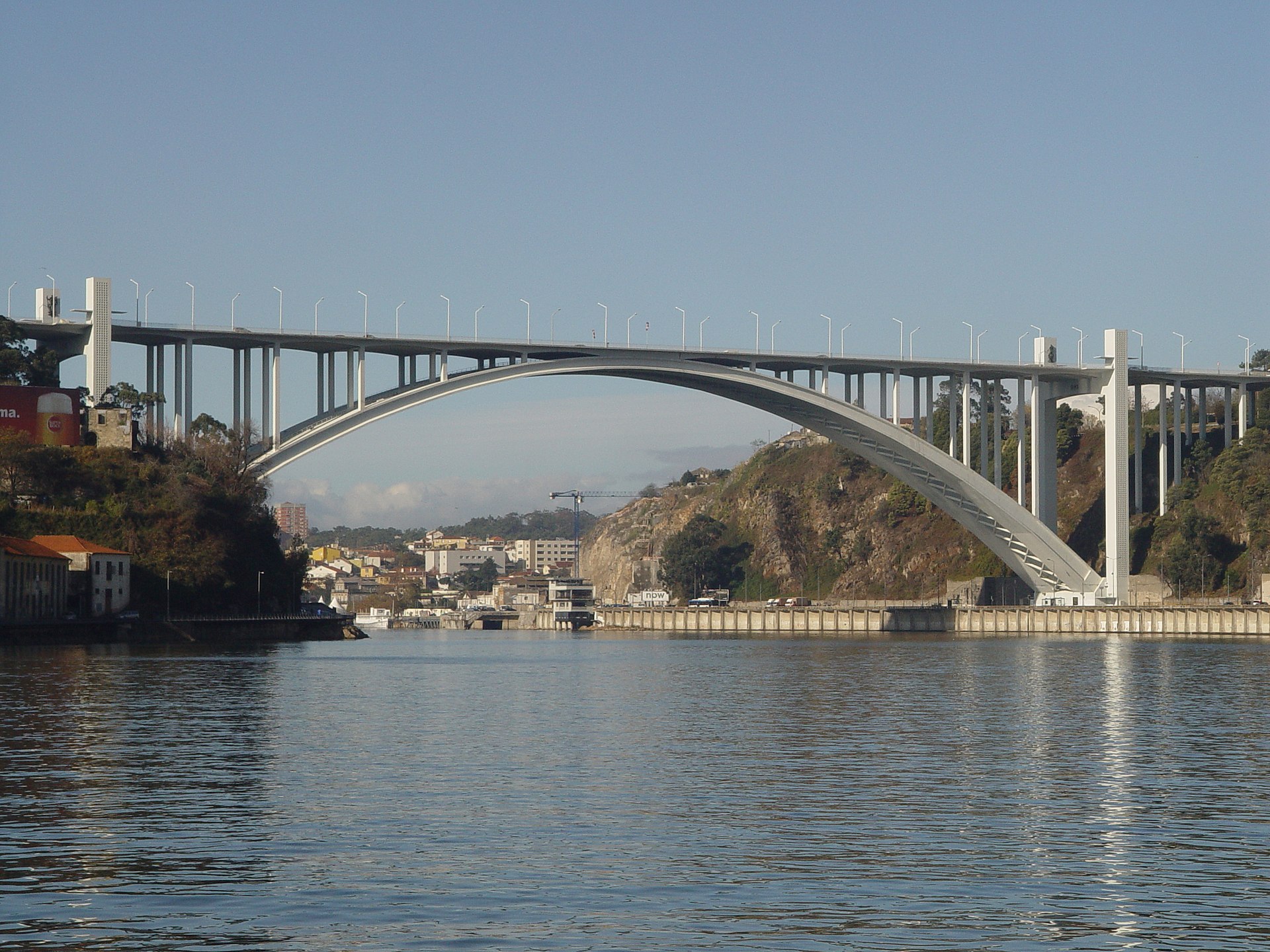 The Arrábida Bridge is a single concrete arch spanning 270 metres across the Douro, and when it was completed in 1963 it was the longest concrete arch bridge in the world. Designed by Edgar Cardoso — Portugal's greatest bridge engineer — it's a masterpiece of mid-century structural design that makes the Dom Luís I Bridge look fussy by comparison. The bridge carries six lanes of traffic and was built to connect Porto to the beaches south of the river, but its recent fame comes from the Porto Bridge Climb — a guided walk over the top of the arch, 65 metres above the water, that's become one of the city's most popular experiences. You clip into a safety harness and walk the curved surface of the arch from one bank to the other, with views upriver toward the city centre and downriver toward the Atlantic. It's vertigo-inducing and exhilarating in equal measure. Even from below, the bridge is worth seeing. The curve of the arch is mathematically elegant — a parabola that distributes the load with an efficiency that still impresses structural engineers. The best view is from the Foz promenade looking upriver, where the bridge frames the Douro valley like a gateway between the city and the ocean.