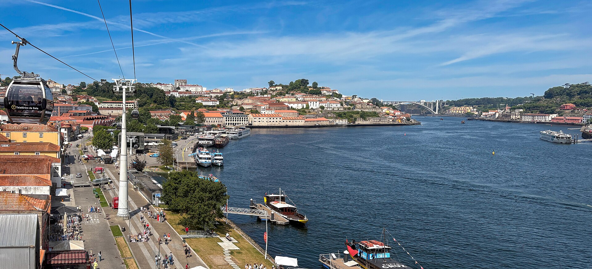Across the river from Porto, the south bank is lined with the lodges where port wine has been aged and stored since the 17th century. The names on the warehouses read like a roll call of British merchant families who came to Porto and never left — Taylor's, Graham's, Sandeman, Cockburn's — because port wine was essentially invented by the English, who added brandy to Portuguese wine to survive the sea voyage home and accidentally created something extraordinary. Most lodges offer tours and tastings, and the experiences range from casual (Sandeman's quick tour with a glass of tawny) to extravagant (Taylor's multi-vintage tasting in a terrace overlooking the city). The cellars are fascinating regardless of which you choose — vast, dark, cool warehouses stacked with barrels that have been sleeping for decades. Some of the oldest vintages have been ageing since the 19th century, and the angel's share — the wine that evaporates through the barrel — has stained the cellar walls and ceilings black with a fungus that feeds on alcohol vapour. The waterfront along the Gaia side has been transformed from working docks into a promenade of restaurants, bars, and tasting rooms. Walk uphill behind the lodges to the Jardim do Morro for a view back across the river to Porto's skyline that's especially good at sunset. The easiest way to get here is to walk across the upper deck of the Dom Luís I bridge and take the cable car down to the waterfront — a short ride that gives you an aerial view of the lodge rooftops and the river below.