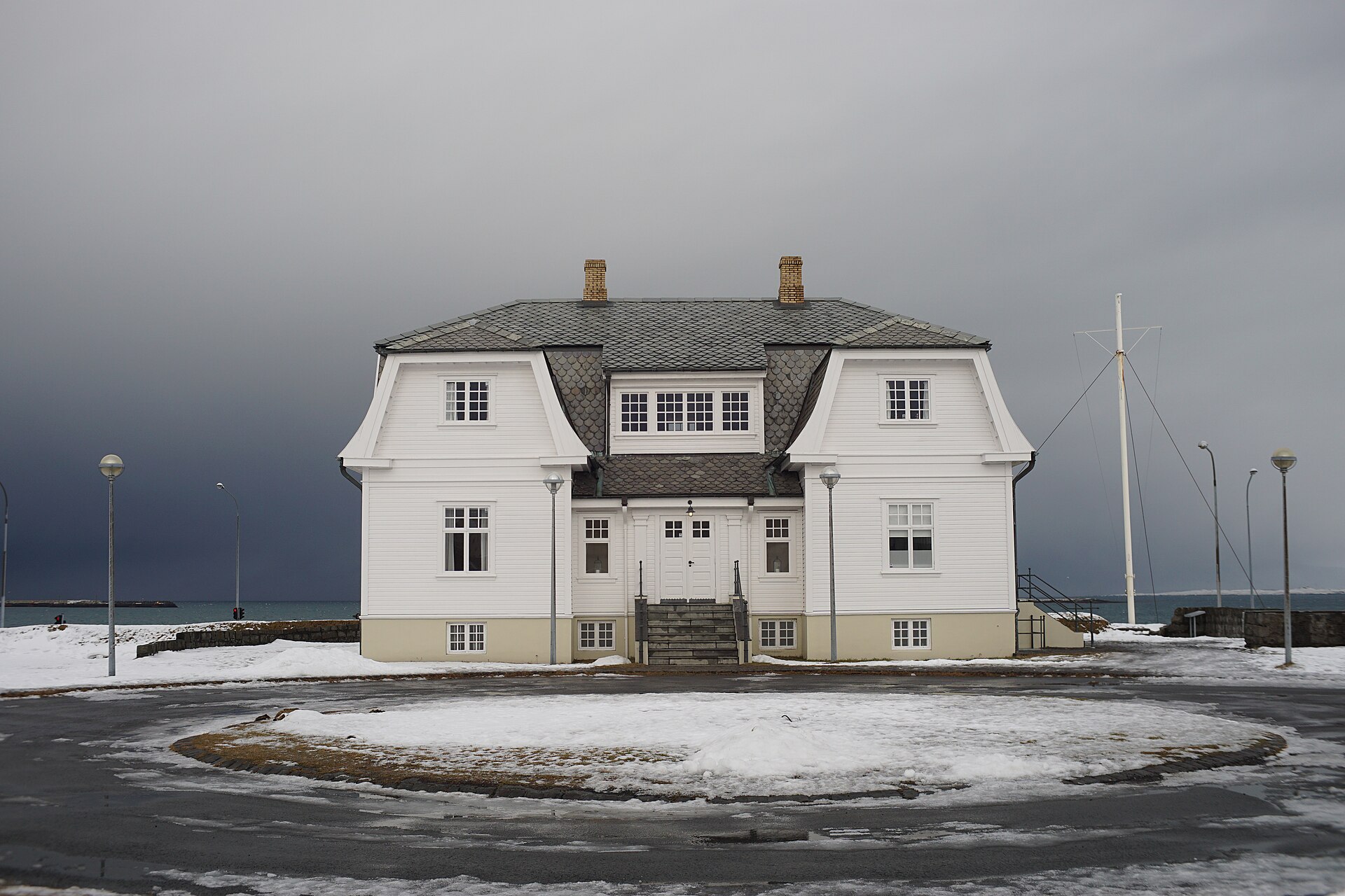 Höfði House is a white wooden mansion on the north shore of Reykjavik — best known internationally as the site of the 1986 summit between Ronald Reagan and Mikhail Gorbachev that helped end the Cold War. The building was originally constructed in 1909 as the residence of the French Consul to Iceland, later served as home to the British ambassador (who claimed it was haunted by a 'White Lady' and reportedly convinced Parliament to sell it), and is now owned by the City of Reykjavik and used as a reception venue. The house is not usually open to visitors (only by appointment or during occasional open days), but the exterior and the seaside setting — with views across Faxaflói bay to Mount Esja — are striking on their own. A commemorative plaque marks the Reagan-Gorbachev summit, and the location is a natural stop on a walk along the northern waterfront between Harpa and the Sun Voyager.