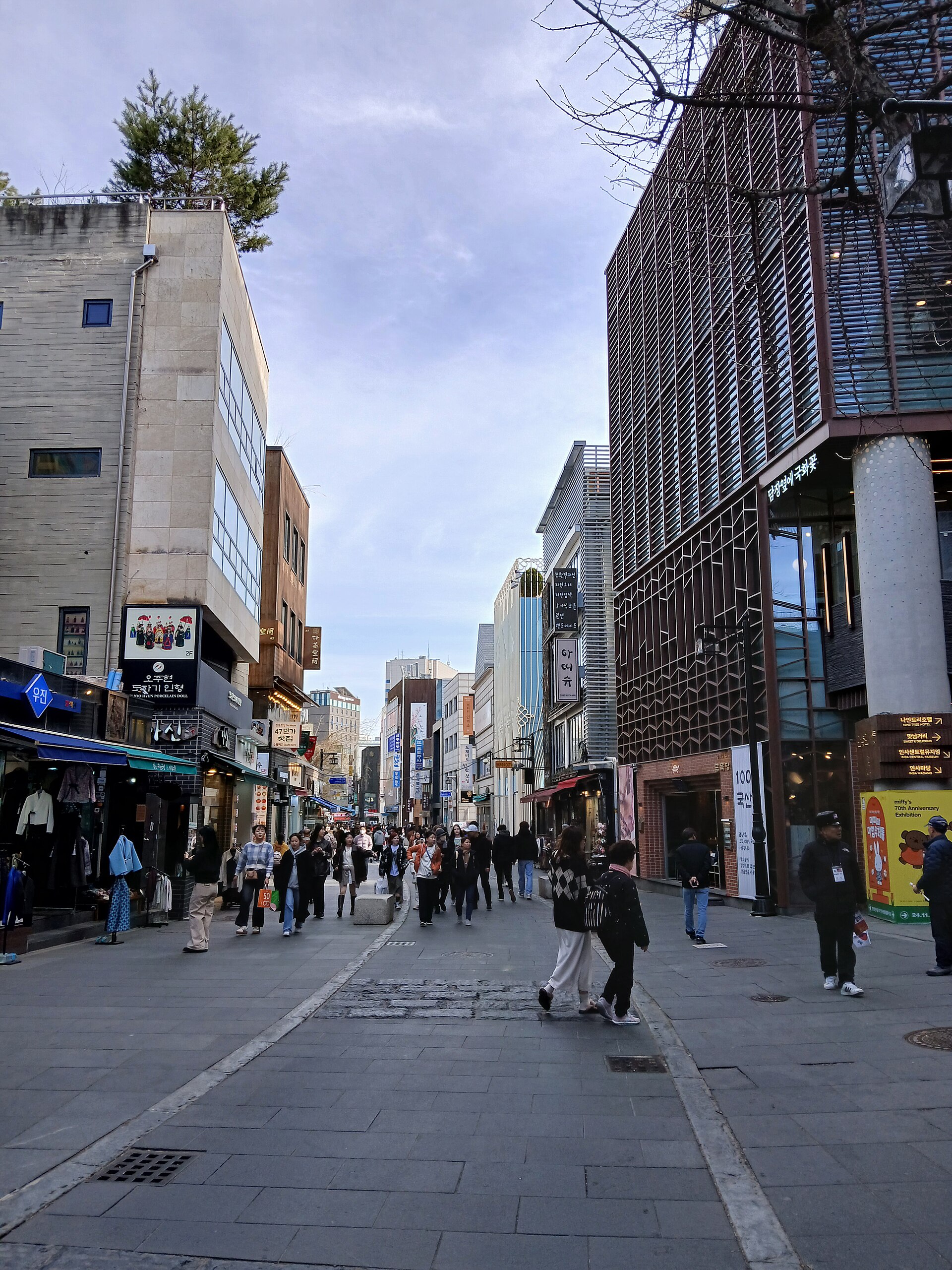 Hongdae is Seoul's youth culture capital — a neighbourhood surrounding Hongik University (Korea's top art school) that has been the centre of indie music, street art, and underground culture since the 1990s. The streets closest to the university are lined with live music clubs, vintage clothing shops, and independent galleries, and on weekend evenings the area becomes an open-air performance space where buskers, dance crews, and street musicians compete for the attention of the thousands of young Koreans and visitors who pour into the neighbourhood after dark. The Hongdae busking scene is genuinely impressive. The Hongdae Playground, a small park at the neighbourhood's centre, fills with performers on Friday and Saturday nights — dance groups rehearsing K-pop choreography, singer-songwriters with portable amplifiers, beatboxers, and the occasional full band. The quality ranges from amateur to professional (several K-pop stars were discovered busking in Hongdae), and the crowd — seated on the ground, standing, filming on phones — creates an atmosphere that's half concert, half block party. The neighbourhood's commercial character has shifted over the past decade — rising rents have pushed some indie culture toward neighbouring Yeonnam-dong and Mangwon — but Hongdae remains the default nightlife destination for anyone under 35 in Seoul. The clubs on Eoulmadang-ro host everything from K-indie to electronic to hip-hop, and the late-night food options (24-hour Korean fried chicken, tteokbokki stalls, ramen shops that open at midnight) sustain a scene that runs until sunrise.