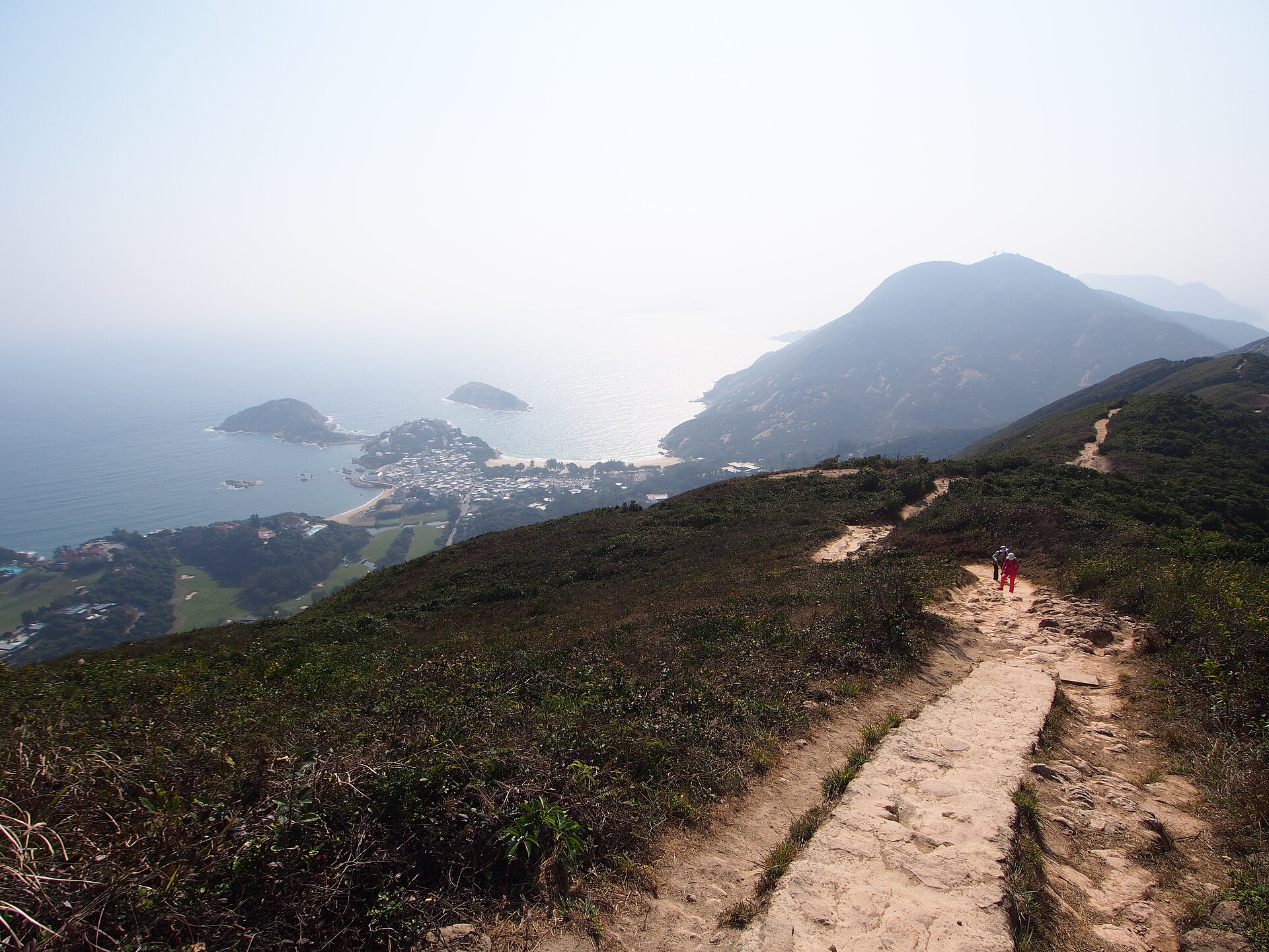 The trail follows the ridgeline of Shek O Peak (284m) through subtropical woodland and scrubland, with the sea visible on both sides at the highest points. The elevation gain is moderate (about 200m from the trailhead), and the path is well-maintained with steps on the steeper sections, making it accessible to anyone with reasonable fitness. The views from the ridge — looking south across the empty coastline to islands that appear uninhabited, and north to the towers of the city in the distance — demonstrate Hong Kong's remarkable geography: a hyper-dense urban core surrounded by mountains and coastline that are genuinely wild.